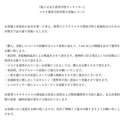 「結ヶ丘女子高等学校キッチンカー」にて、
