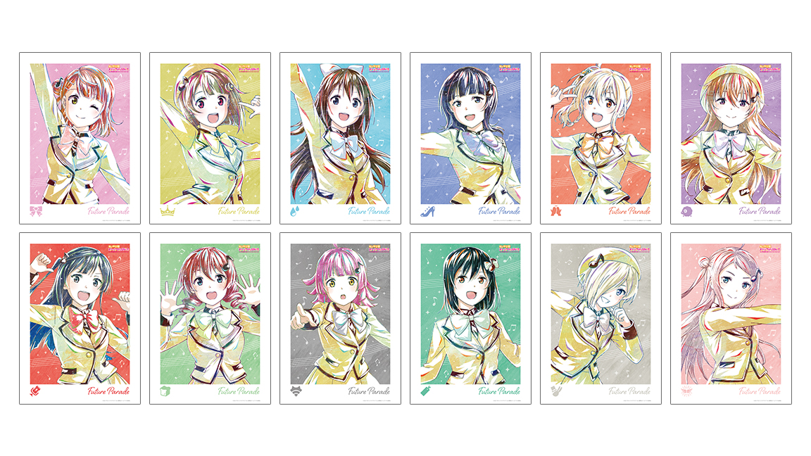 上原 歩夢、中須 かすみ、桜坂 しずく、朝香 果林、宮下 愛、近江 彼方、優木 せつ菜、エマ・ヴェルデ、天王寺 璃奈、三船 栞子、ミア・テイラー、鐘 嵐珠を新たなタッチで魅力的に表現し、ブロマイド3枚セットに仕上げました。