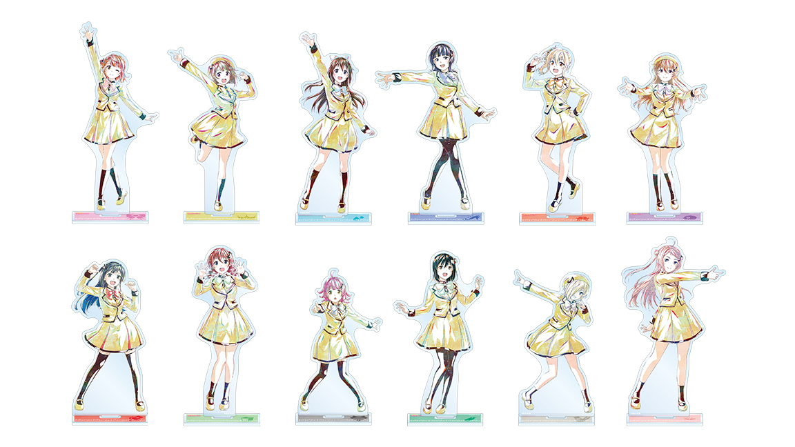 上原 歩夢、中須 かすみ、桜坂 しずく、朝香 果林、宮下 愛、近江 彼方、優木 せつ菜、エマ・ヴェルデ、天王寺 璃奈、三船 栞子、ミア・テイラー、鐘 嵐珠を新たなタッチで魅力的に表現し、アクリルスタンドに仕上げました。