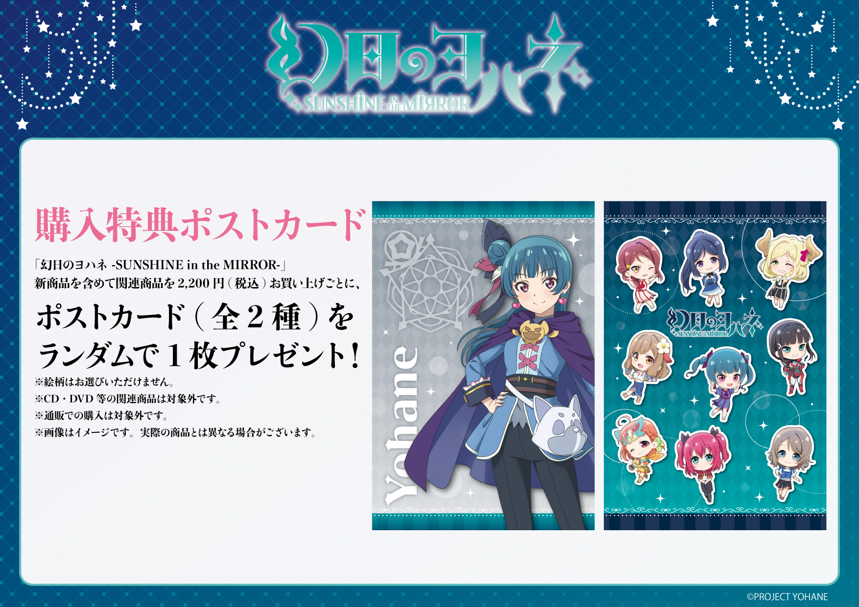 「幻日のヨハネ -SUNSHINE in the MIRROR-」新商品を含めて関連商品を税込2,200円お買い上げごとに、特典ポストカード(全2種)をランダムで1枚プレゼント!