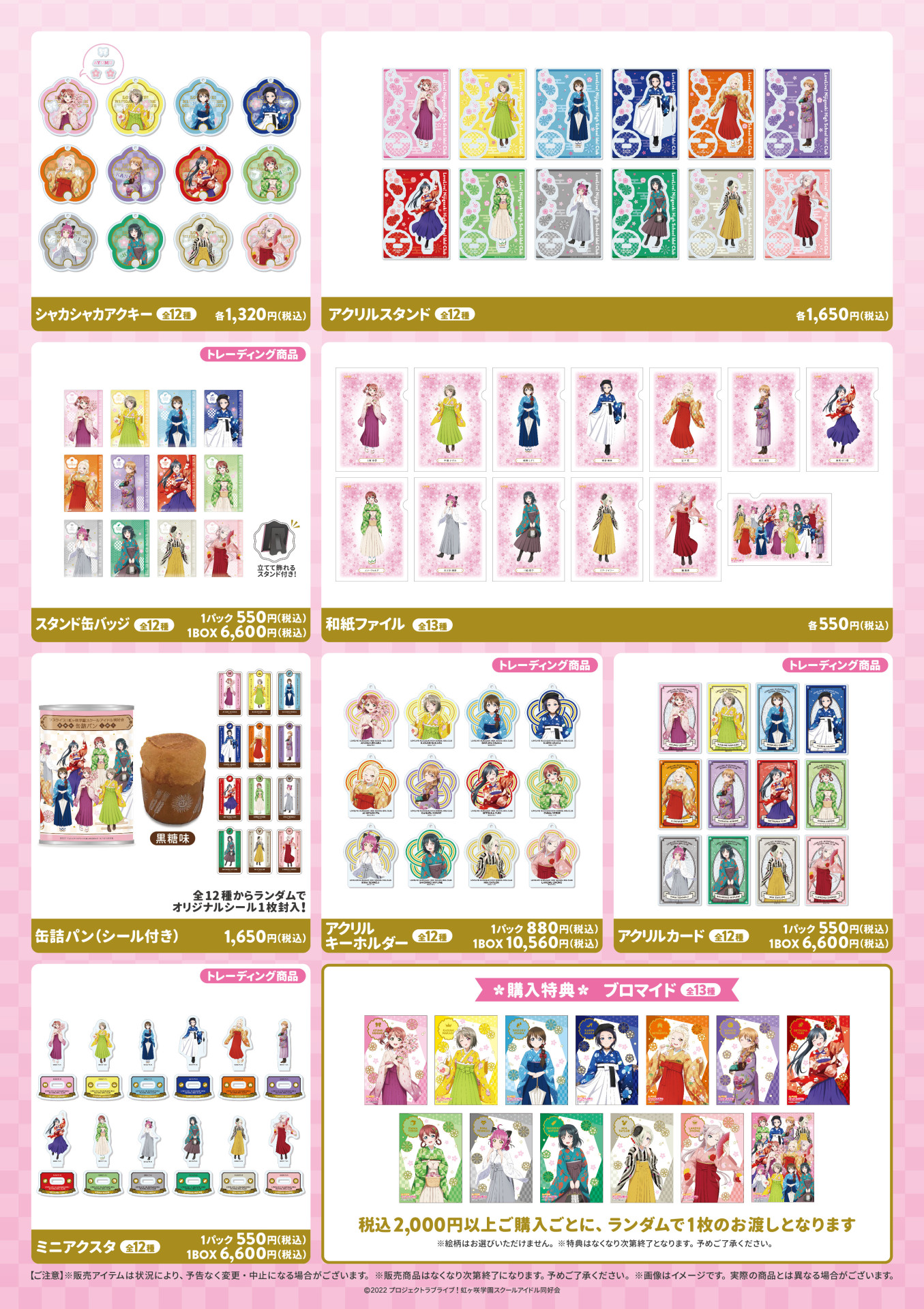 会場にて商品を2,000円(税込み)以上お買い上げで、特典ブロマイド(全13種)をランダムで1枚プレゼント!