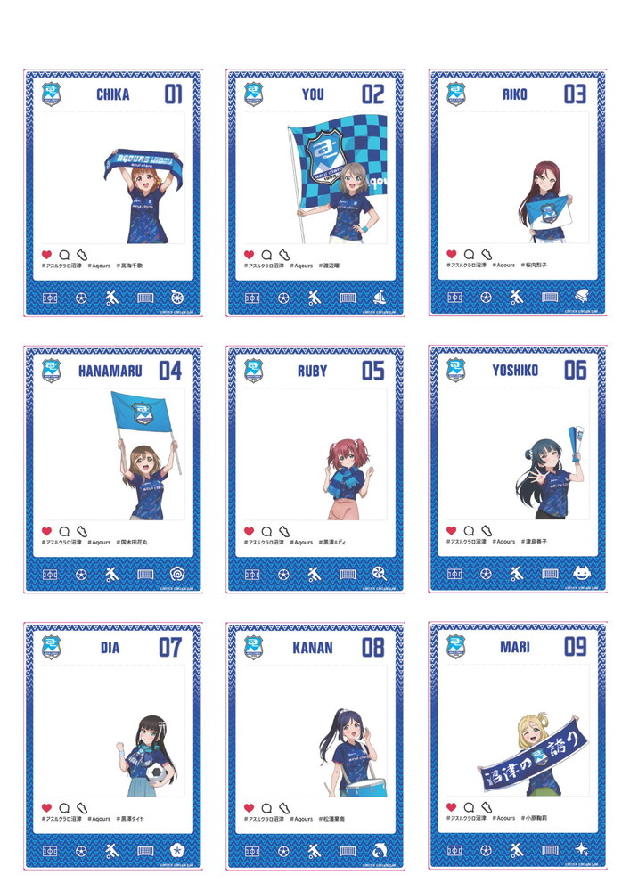 今回のコラボユニフォーム「2024アスルクラロ沼津 3rdユニフォーム ラブライブ!サンシャイン!!エディション」をAqoursメンバーが着用したイラストを使用した特別デザインとなっております。