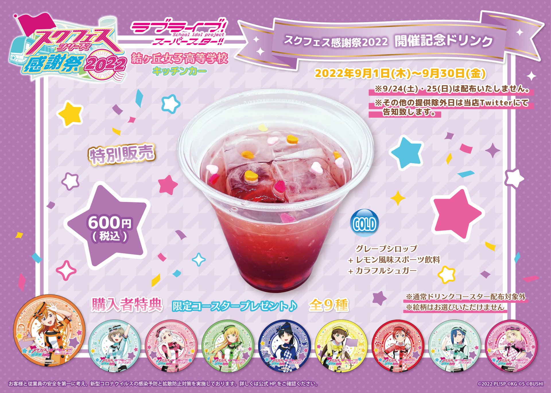 ※記念ドリンク、特典ブロマイドの配布は無くなり次第終了となります。あらかじめご了承ください。