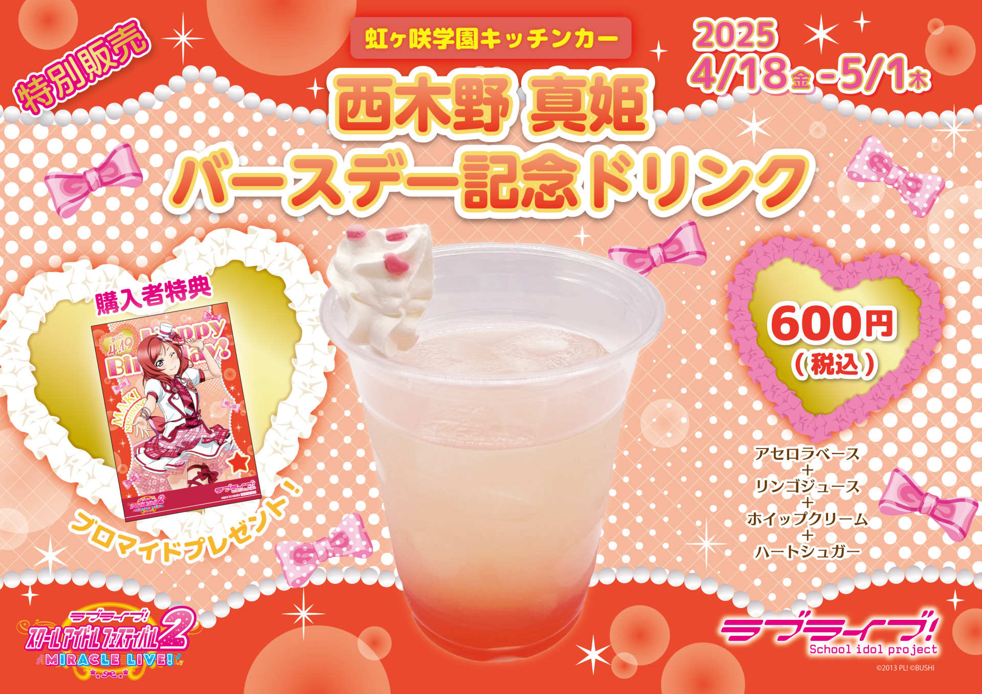 「虹ヶ咲学園キッチンカー」よりバースデー記念ドリンクメニュー販売のお知らせ