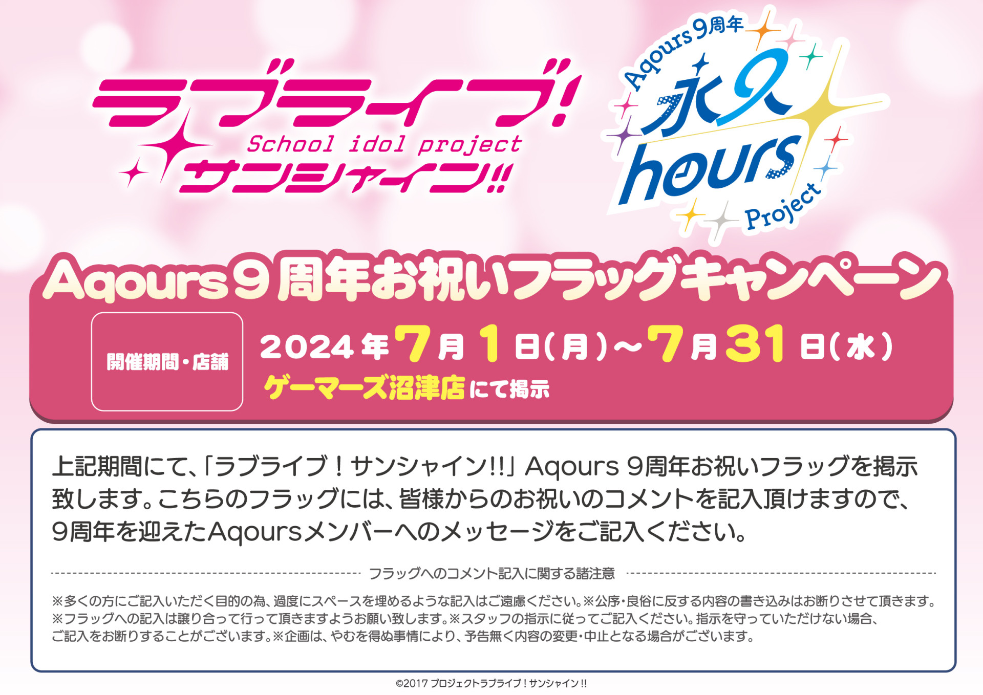 「ラブライブ!サンシャイン!!」 Aqours 9周年お祝いフラッグキャンペーンのお知らせ