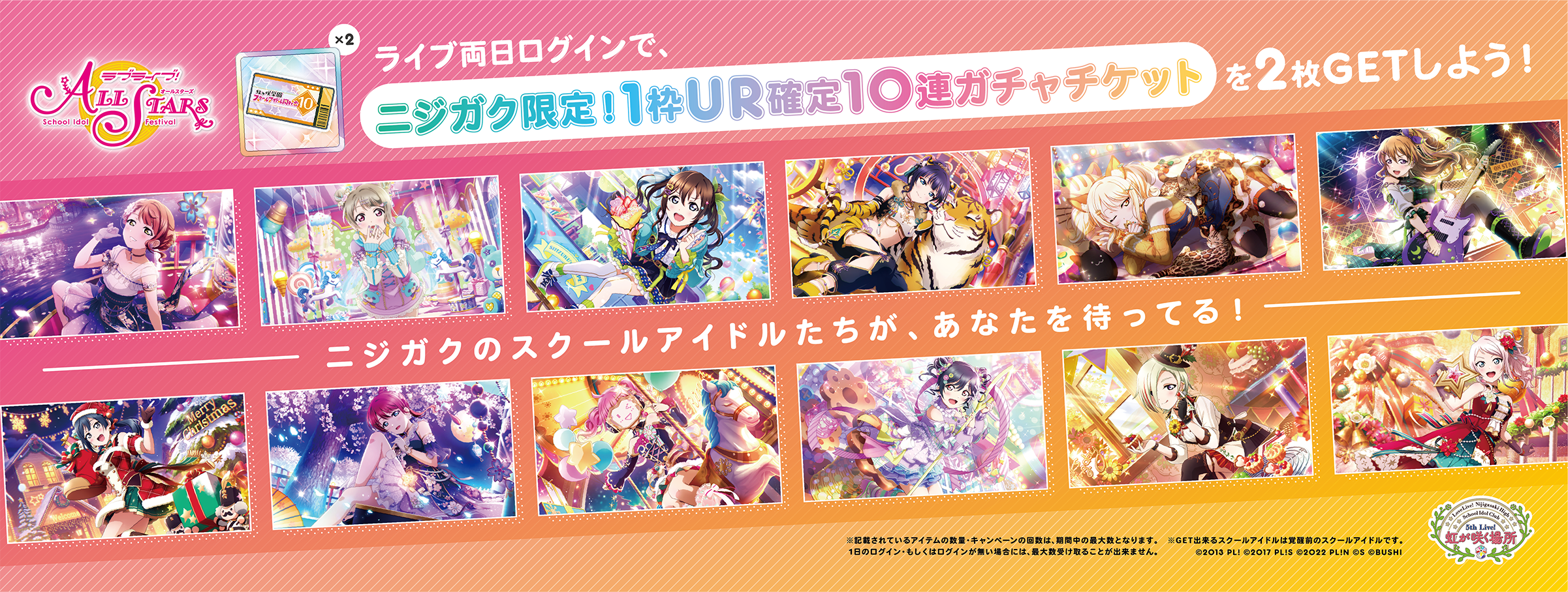 スクスタでは、「ラブライブ!虹ヶ咲学園スクールアイドル同好会 5th Live! 虹が咲く場所 Next TOKIMEKI公演」開催を記念して、当日限定のログインボーナスを開催!