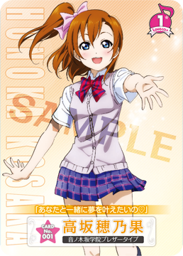 一部の『ラブライブ!』関連商品(CD、映像商品、イベント販売グッズ等)に、カードなどに印刷された形で、封入されています。 また、電撃G'sマガジンにて連載中の、『ラブライブ!』誌上ファンクラブにて、おたよりが採用されるごとに、「Loveca+つき特製トレカ」を送りしています。